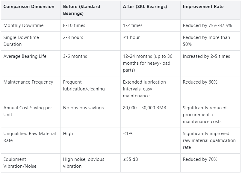 · Cost-Effectiveness: Service life increased by 2–3 times (L10 ≥ 30,000 hours), maintenance frequency reduced by 60%, significantly lowering overall costs.