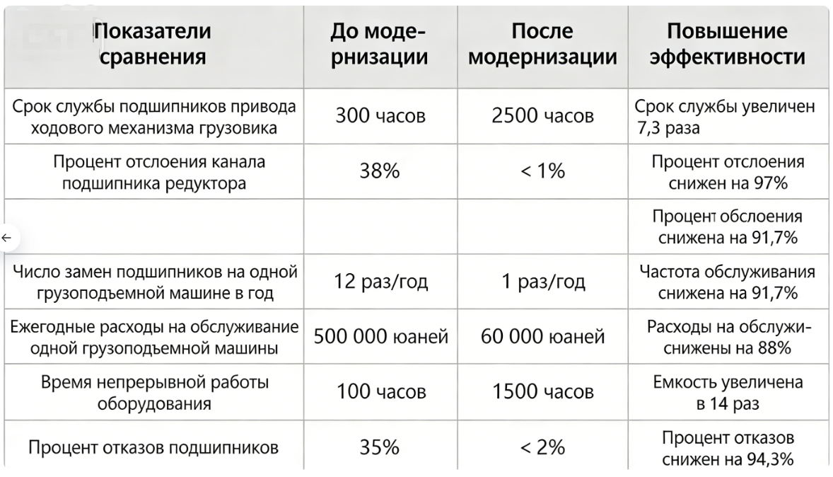 Seit der Schwerindustrie - Gruppe die SKL - Lagerlösung übernommen hat, konnten durch eine sechsmonatige praktische Betriebsverifizierung sowohl die Geräteleistung als auch die wirtschaftlichen Vorteile deutlich gesteigert werden. Für den spezifischen Datenvergleich siehe die folgende Tabelle: