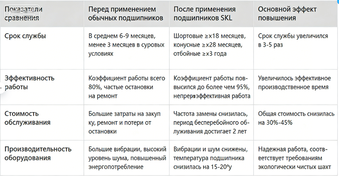 До внедрения подшипников SKL в отрасли преимущественно использовались обычные подшипники с множеством недостатков. После применения эффективность работы дробилок значительно повысилась.