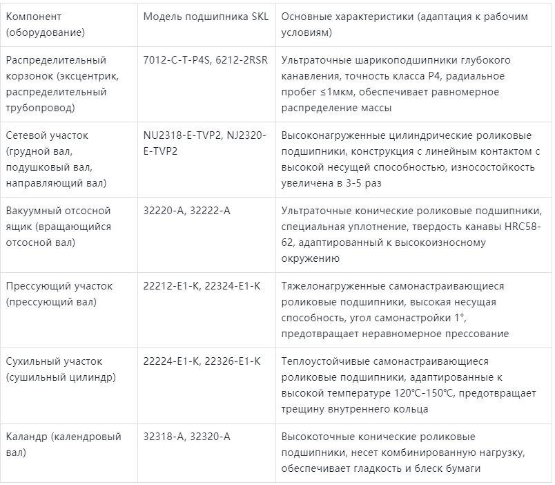 Компания SKL родом из Германии, более 70 лет работает в сфере высококачественных подшипников. Благодаря адаптивности ко всем сценариям она точно решает проблемы традиционных подшипников в бумагоделательных машинах: быстрый износ, короткий срок службы, частые обслуживания при высоких температурах, повышенной влажности, больших нагрузках и запыленности. В данной статье рассматривается подбор основных компонентов, преимущества подшипников, изменения в их применении и сильные стороны компании SKL, что дает практические рекомендации по выбору подшипников для бумажных предприятий.
