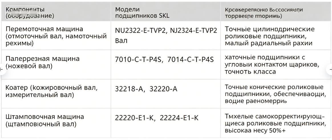 Основное оборудование: перемотчики, резательные машины, покрывочные установки и т.д., с жесткими требованиями к высокоскоростным характеристикам и точности подшипников, конкретная адаптация следующая: