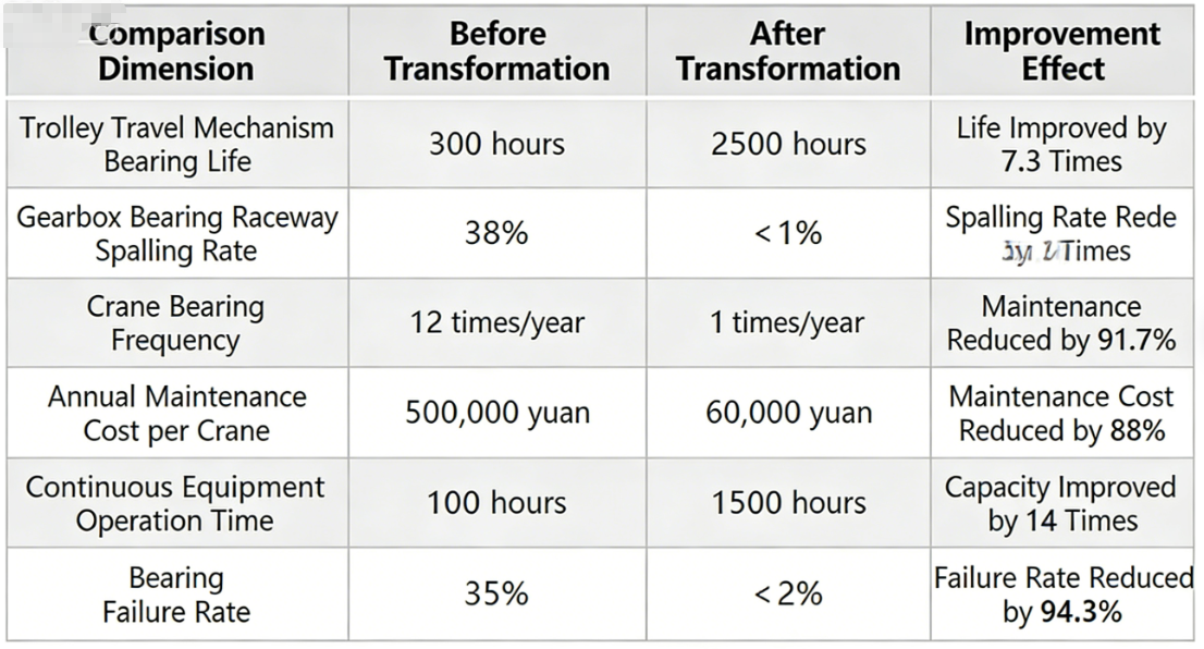Since the heavy industry group adopted the SKL bearing solution, through 6 months of actual operation verification, the equipment performance and economic benefits have been significantly improved. For specific data comparison, refer to the table below: